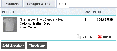 - Click Duplicate to add a copy of that product to the cart.